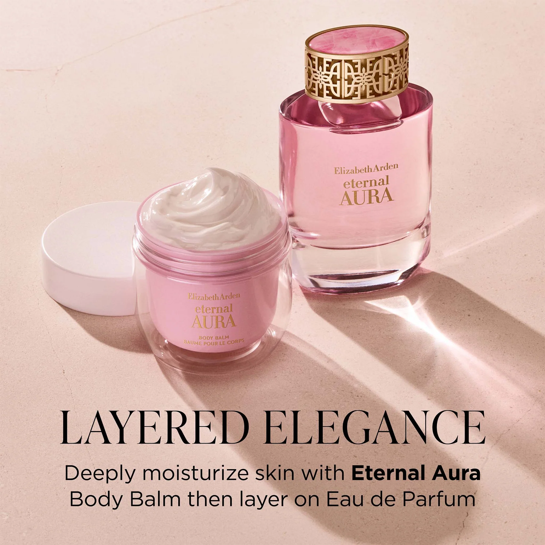 Vibrant pink pepper and golden pear create a sparkling opening before blooming into magnolia and pink peony, elevated by an exclusive rose and ambrette co-distillate created uniquely for Elizabeth Arden. Warm sandalwood and amber provide a sensual, lasting embrace. Eternal Aura is your moment of escape, a ritual that empowers and uplifts. Just as Elizabeth Arden created her iconic pink salons as sanctuaries where women could be themselves and feel their best, Eternal Aura becomes your own sanctuary.
